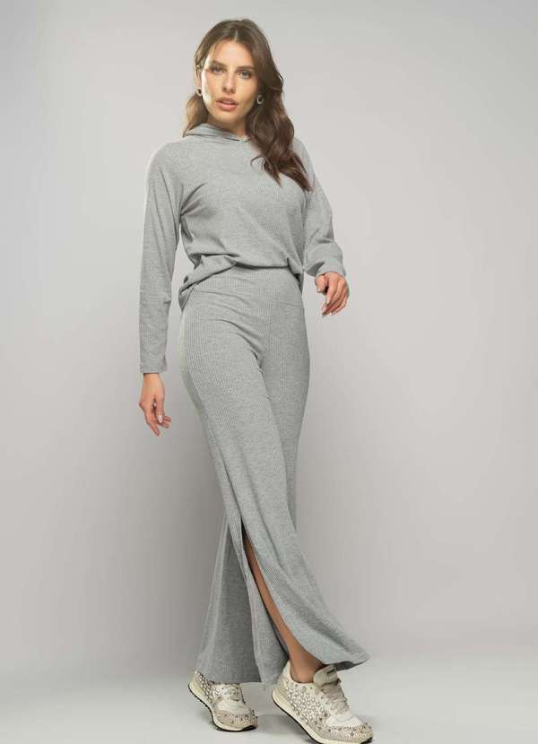 Salvatore Fashion - Conjunto Comfy com Casaco e Calça Flare Canelado Fashion Cinza