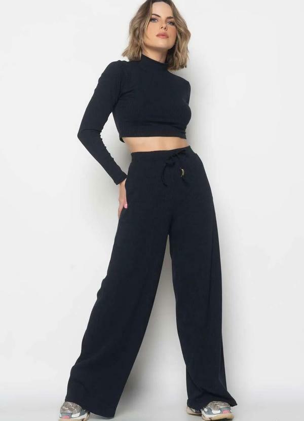 Salvatore Fashion - Conjunto Comfy Cropped M/L e Wide Leg Canelado Fashion Preto