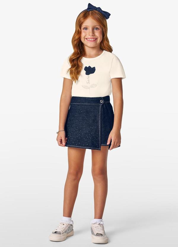 Trick Nick - Conjunto Infantil Blusa com Shorts Saia Bege