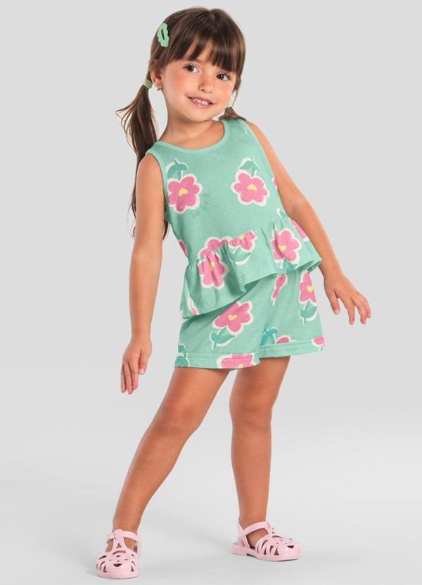 Brandili - Conjunto Infantil Menina de Flores Azul