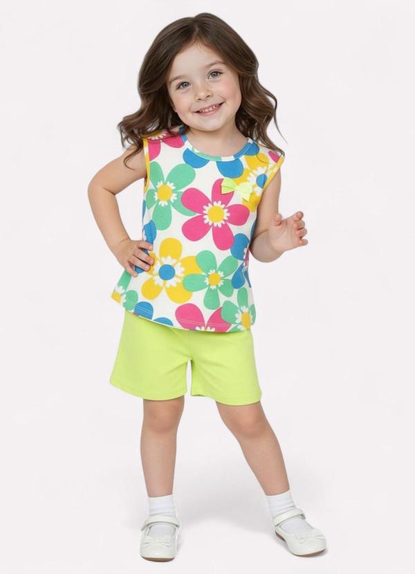 Kyly - Conjunto Infantil Menina Flores Branco
