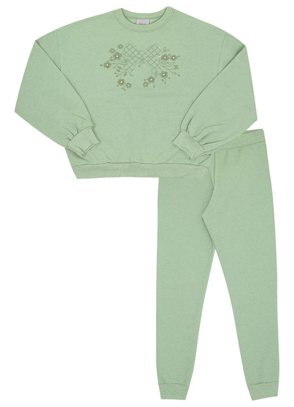 Pulla Bulla - Conjunto Infantil Menina Moletom Linho Verde