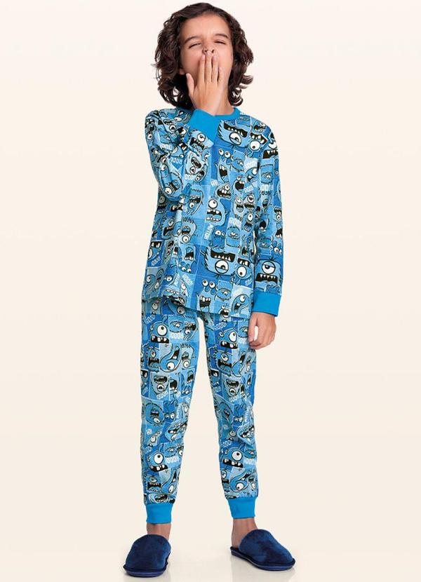 Fakini Kids - Conjunto Pijama Camiseta M/Longa/Calça Azul