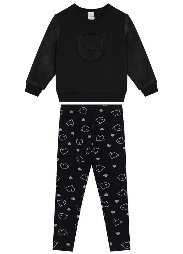 Carinhoso - Conjunto Ursinhos em Moletom Menina Preto