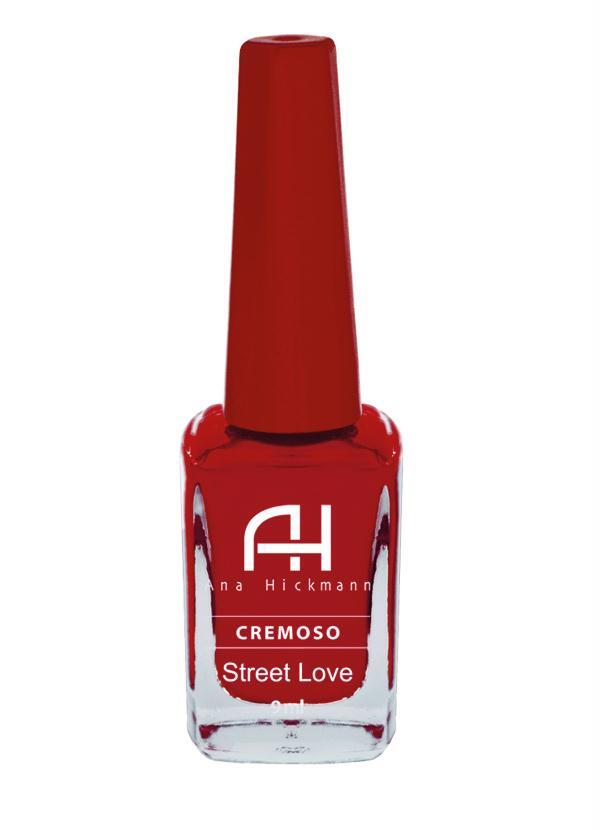 A nova coleção de esmaltes Ana Hickmann, foi inspirada no tema CityScape, retratando a paisagem urbana que permeia a cidade de Nova York. As cores e os nomes dos esmaltes estão conectados a esse universo e trazem como diferencial os frascos, que vêm com tampas personalizadas coloridas de acordo com cada tom. O esmalte Street Love, na cor vermelha, é uma tonalidade quente e intensa, que remete a uma declaração de amor à cosmopolita Nova York, representando a paixão mundial que as pessoas sentem por essa incrível cidade.
