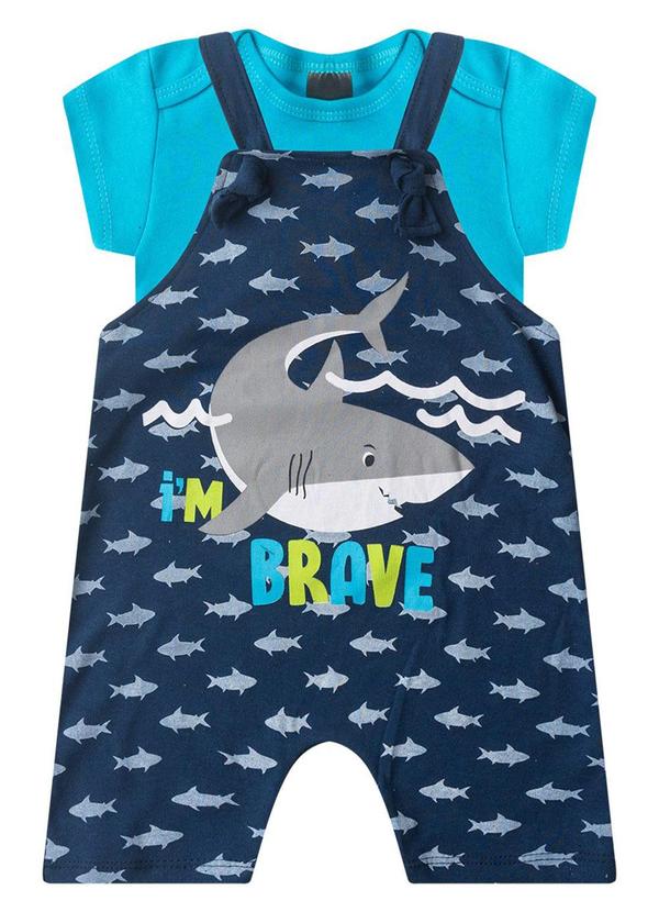 Rosa Azul - Jardineira + Body Bebê Menino Tubarão Azul