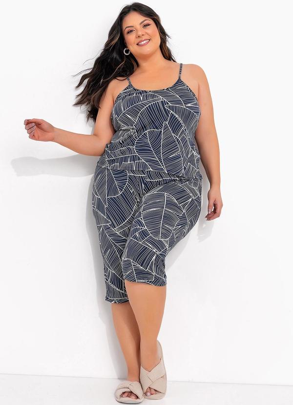 Marguerite - Pijama Folhagem Marinho em Malha Fria.