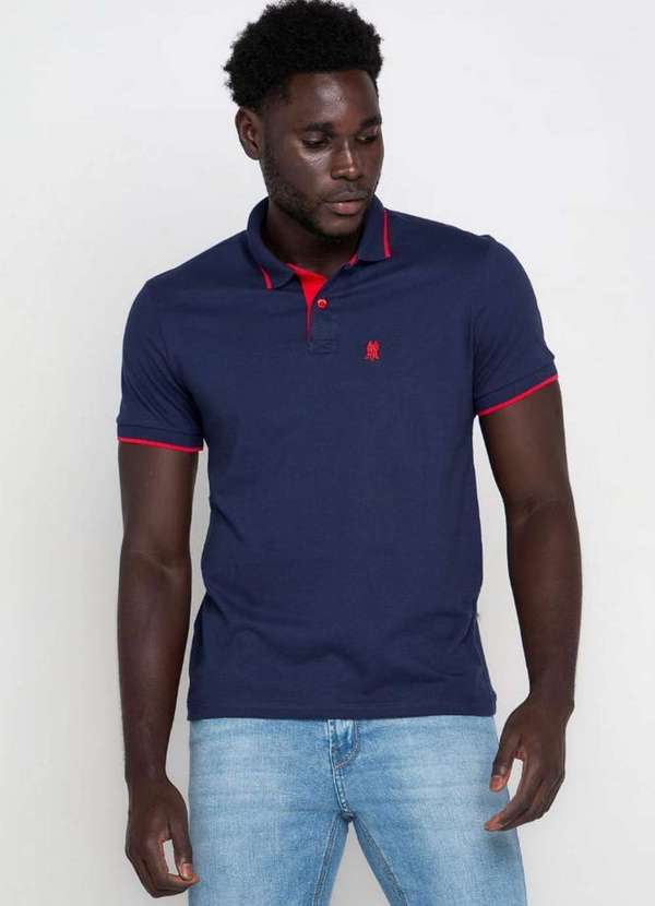 Polo Wear - Polo Masculina Filete de Algodão Polo Wear Azul Escuro Azul Escuro