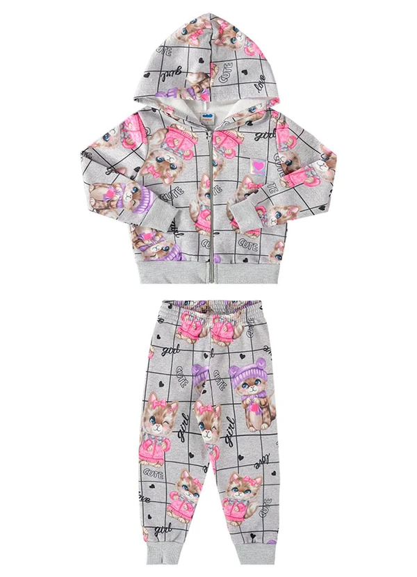Marlan - Conjunto Jaqueta e Calça Moletom Fashion Cinza