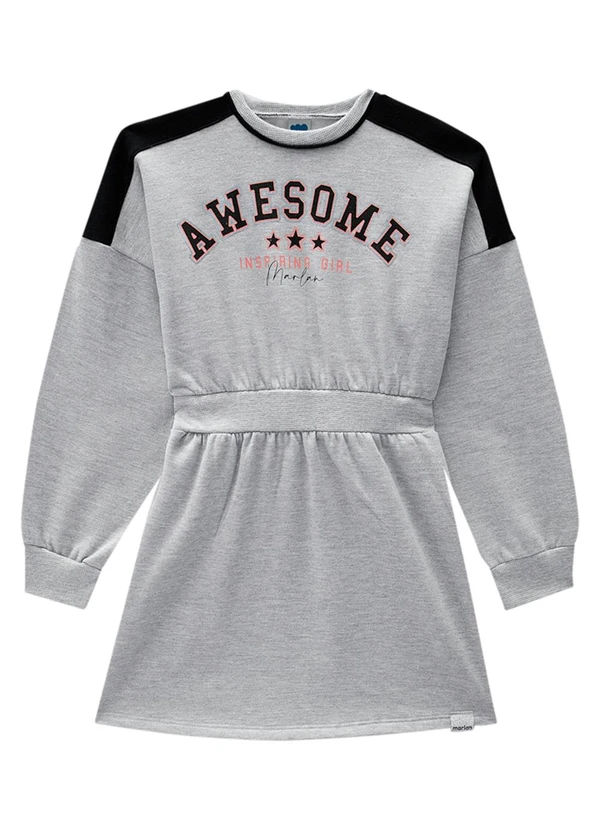 Marlan - Vestido Infantil em Moletom Felpado Cinza