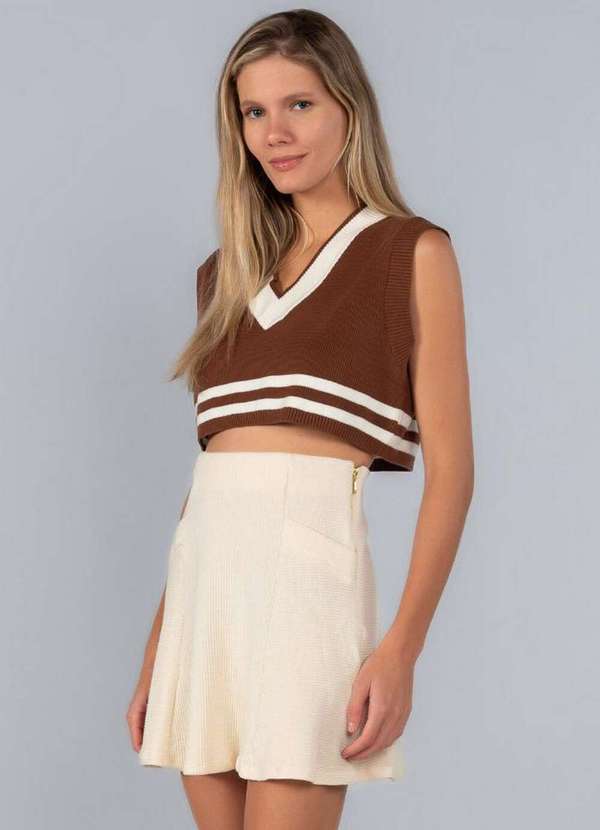 Saia curta canelada. A peça contém modelagem curta, cós alto com elástico e fechamento lateral com zíper. Dica: Ideal para looks mais descontraídos, use com blusas moletom ou de tricot para um visual descontraído nos dias de frio. Composição: 93% Algodão | 6% Poliester | 1% Elastano. Modelo usa: Tamanho P - Medidas 1,71 de altura | 59kg.