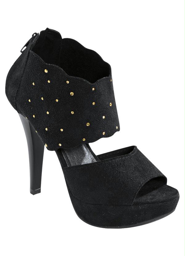Sandália Detalhe com Tachas, confeccionada em camurça sintética.