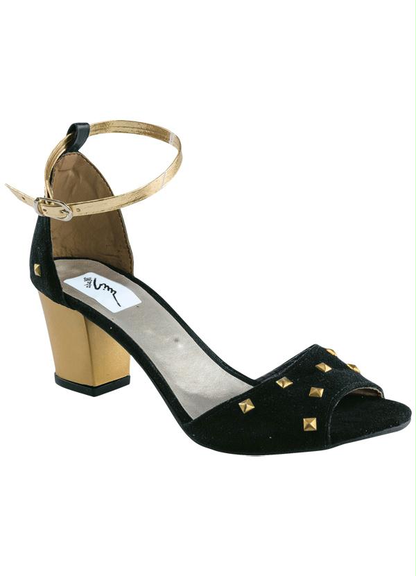 Outlet - Sandália Detalhe Spike Dourado e Preto