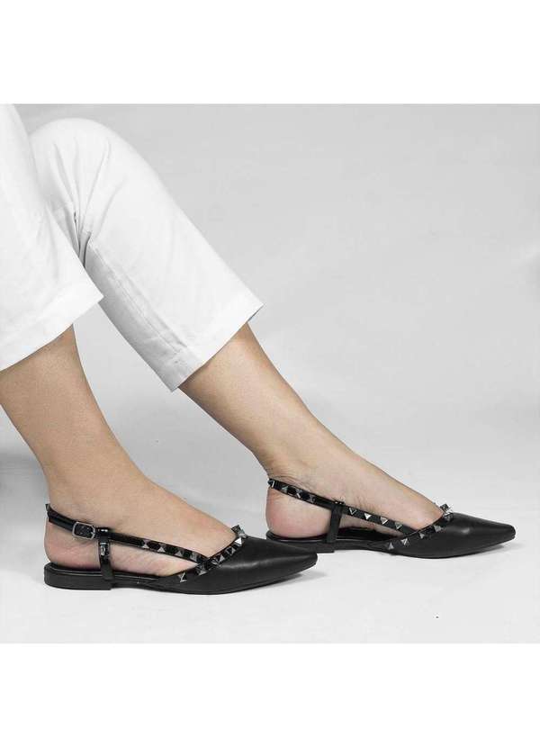Zatta Calcados - Sapatilha Slingback Spikes Mirela Preto