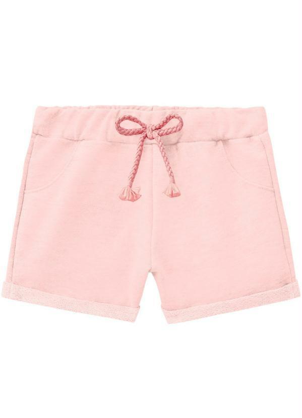Short Infantil Menina Milon confeccionado em Moletom. Possui bolsos de enfeite, barra dobrada, elástico confortável no cós e cadarço para amarração