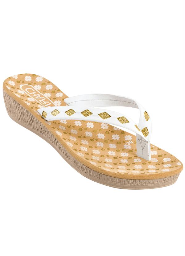 Tamanco Branco Detalhe Glitter Dourado, desenvolvida em EVA.