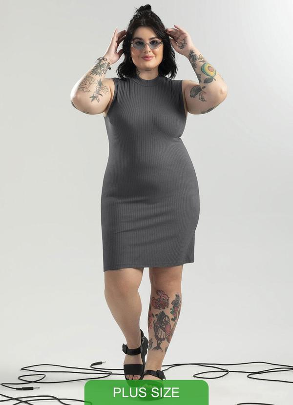 Cativa - Vestido Canelado Plus Size Justo Cinza