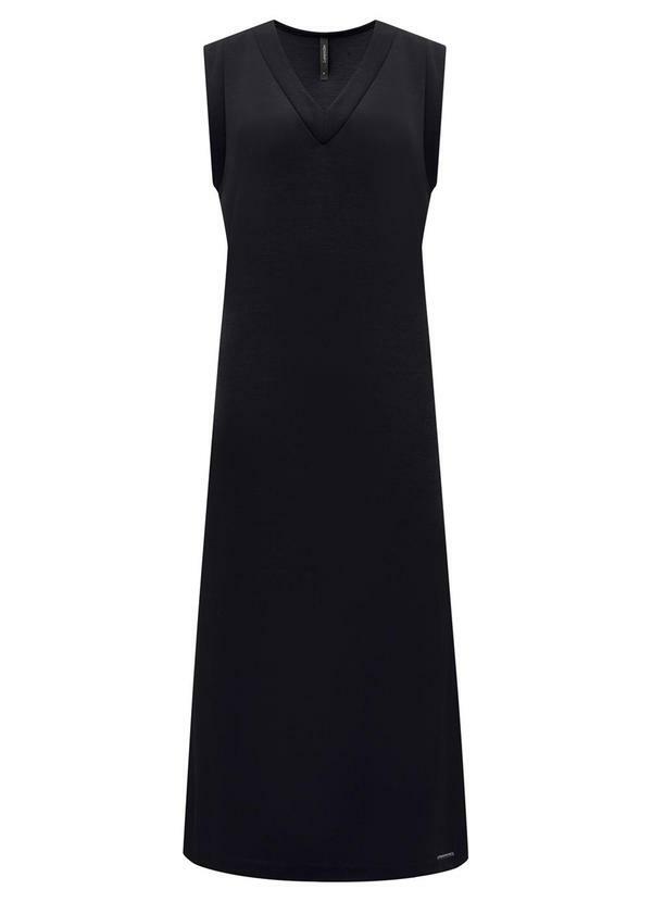 Lunender - Vestido com Decote em V Midi Chá Tricô Preto