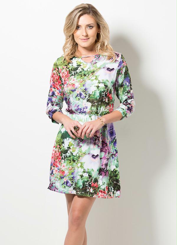 Multimarcas - Vestido com Mangas 7/8 Floral
