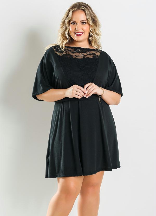 Marguerite - Vestido Detalhe Renda Preta Plus Size