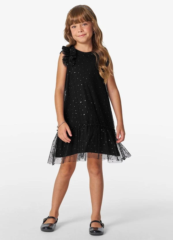 Trick Nick - Vestido Infantil em Tule Lantejoulas Preto