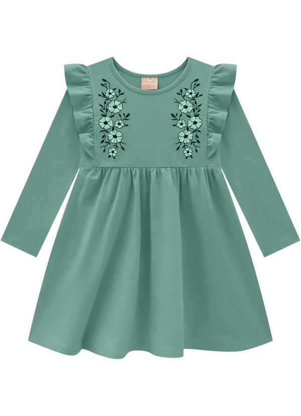Milon - Vestido Infantil Menina Bordado Verde