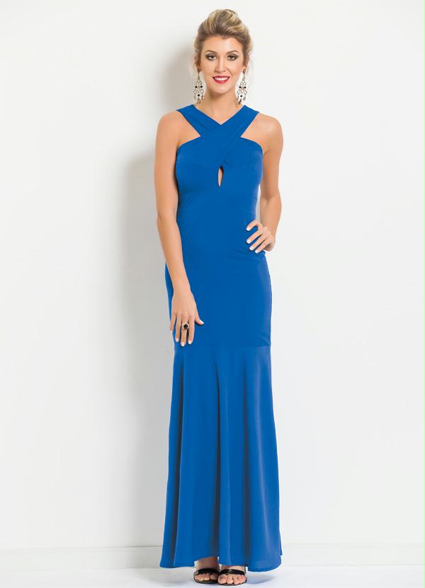Janine - Vestido Longo com Transpasse Frontal Azul