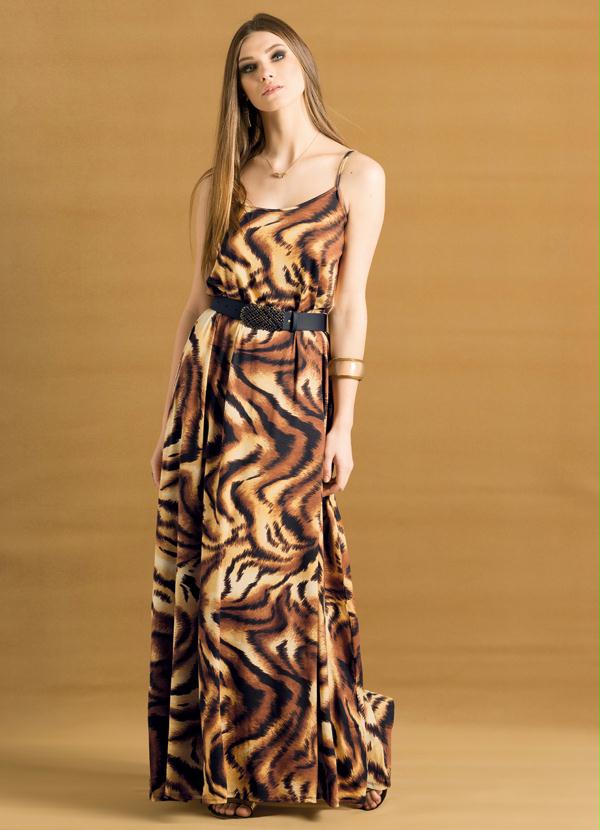 O vestido longo animal print é de arrasar em qualquer ocasião.