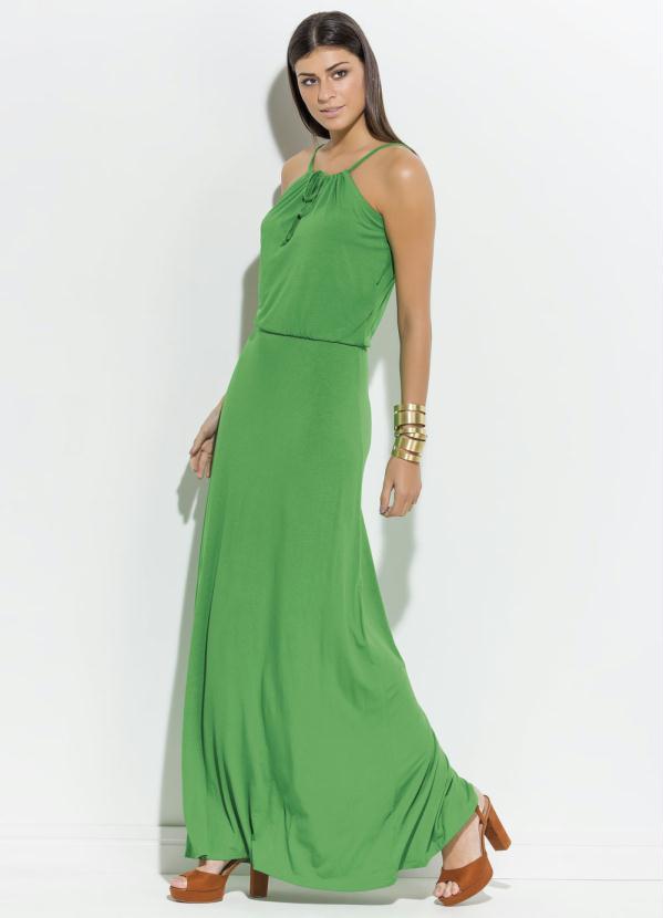 Quintess - Vestido Longo Quintess Verde Decote Trapézio