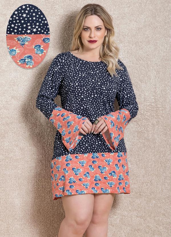 Quintess - Vestido Manga Sino Quintess Estrela e Floral