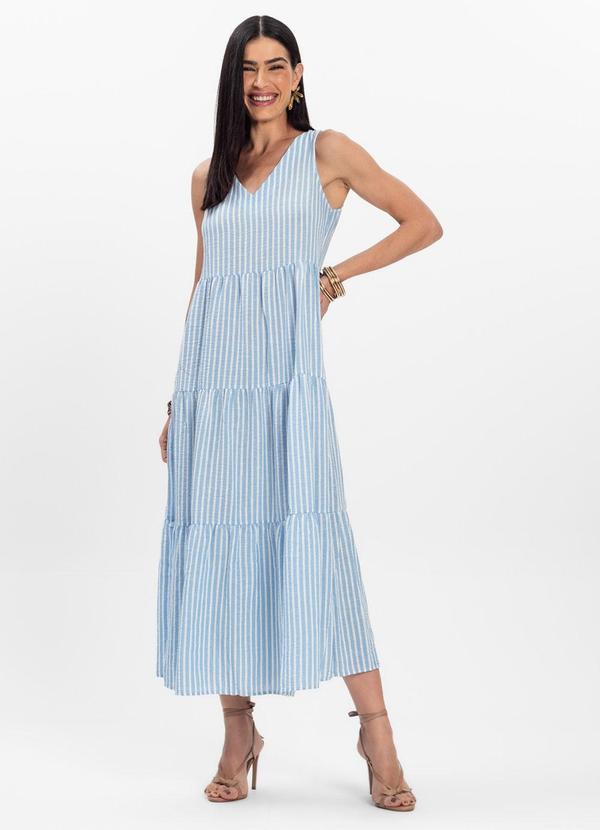 Rovitex - Vestido Midi Listrado Decote V Aishty Azul