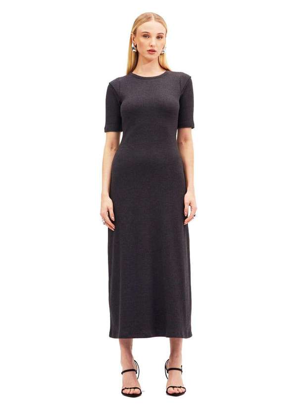 Sommer - Vestido Midi Sommer Canelado Cinza Escuro Cinza