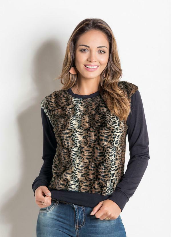 Vinculo Basic - Casaco Preta e Onça com Pelúcia