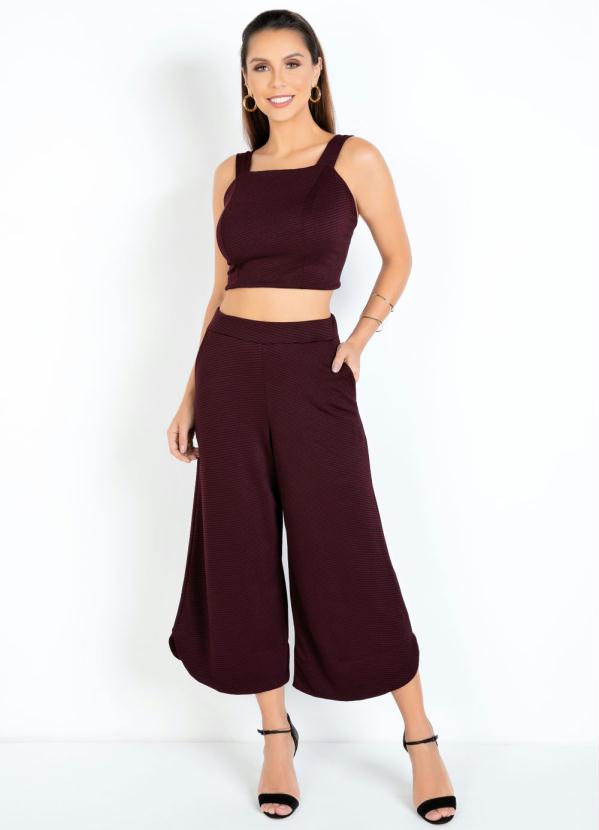D`news - Conjunto Listrada Blusa Cropped e Calça