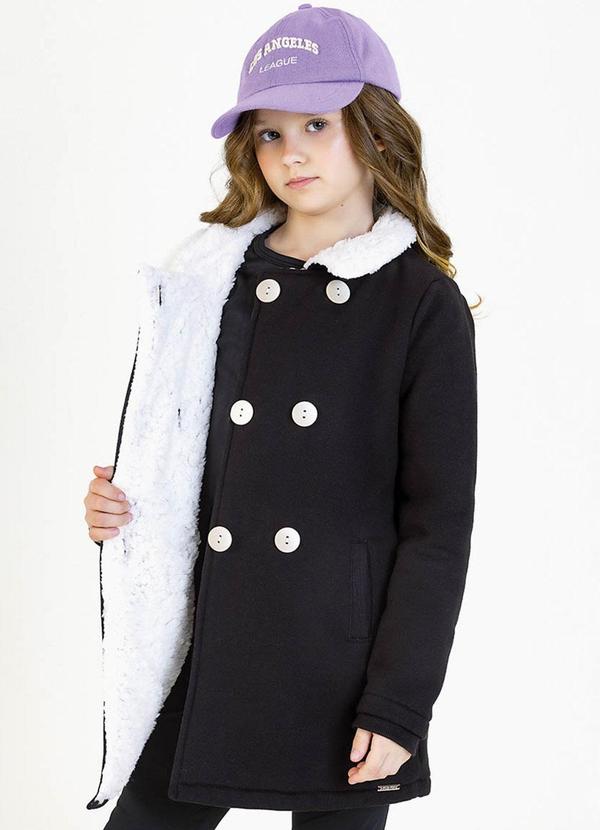 Soft Bonni - Parka Infantil em Moletom e Pelo Sherpa Preto