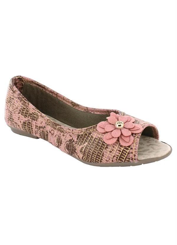 Outlet - Sapatilha com Flores Rosa e Marrom