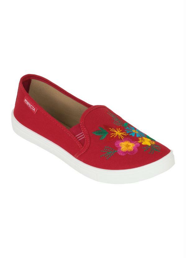 Outlet - Tênis Vermelha com Bordado Floral