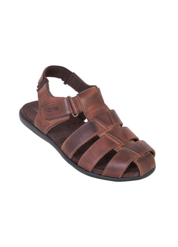Outlet - Sandália Marrom com Velcro e Elástico