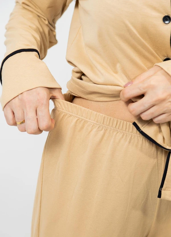 Piante Pijamas - Pijama Americano Longo Algodão Filete Bege Areia
