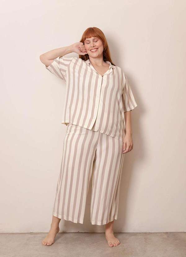 Bold Sleep - Pijama Clássico Listrado Plus Size Bege
