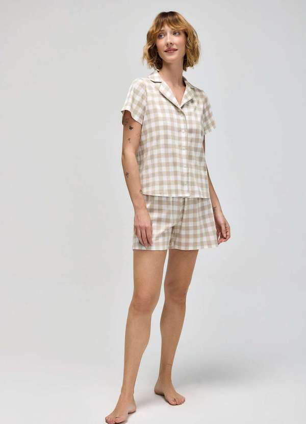 Hering - Pijama Curto Feminino Americano Estampado Bege
