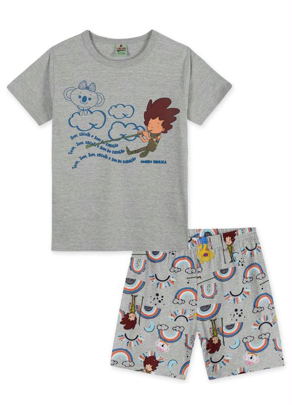 Lilica Ripilica - Pijama Curto Malha Menina Mundo Ripilica Cinza