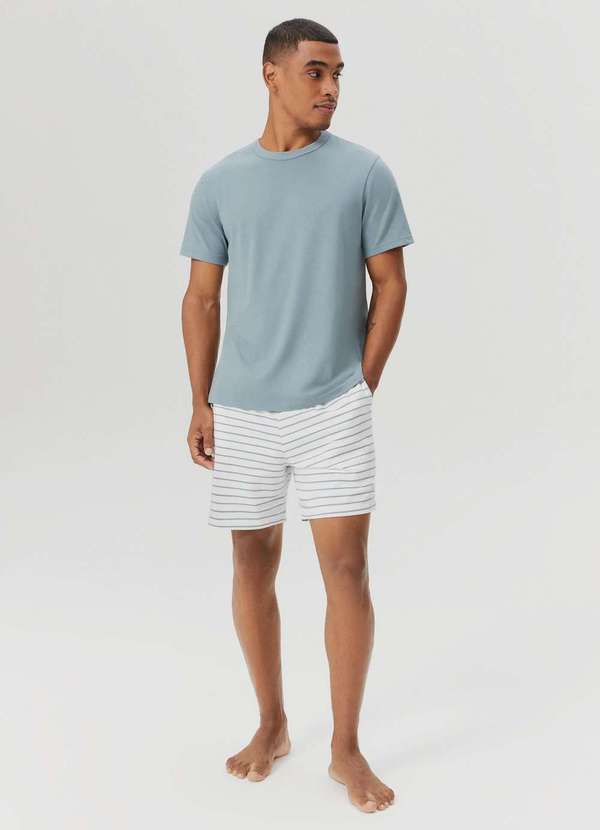 Hering - Pijama Curto Masculino com Shorts Listrado Azul