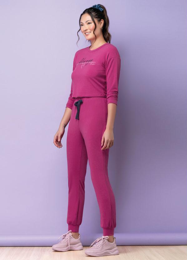 Marialícia - Pijama Feminino Adulto Blusa e Calça Rosa