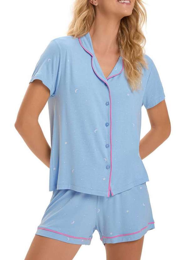 Características: Pijama Feminino Curto Uma combinação perfeita de conforto e encanto para as suas noites Confeccionado em malha visco comfy, este pijama tem um toque macio e caimento leve, proporcionando uma sensação agradável na pele Blusa americana com modelagem sofisticada, abertura frontal com cinco botões e acabamento refinado com filete embutido na gola e na abertura, garantindo um charme delicado Shorts aconchegante com caimento soltinho, acabamento em filete contrastante na barra e a mesma estampa celestial de mini estrelas e luas, para um visual harmonioso e cheio de poesia Ideal para quem busca um pijama delicado, confortável e com um toque de sofisticação Composição: 96% Viscose e 04% Elastano