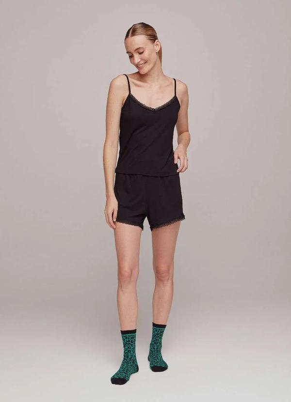 Hering - Pijama Feminino Curto com Regata e Shorts Preto