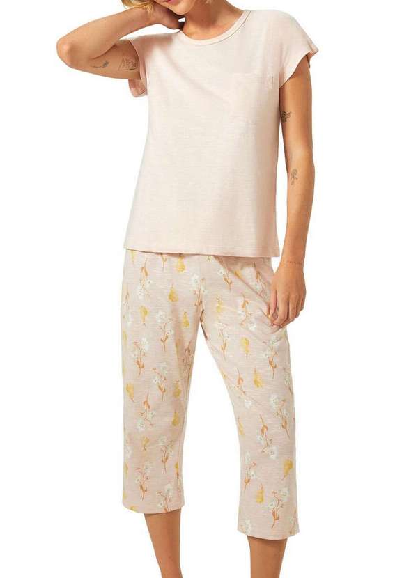 Características: Pijama Longo Feminino Hering Elaborado em malha de algodão Composto por blusa manga curta e gola redonda Calça pantacourt com acabamento flamê Composição: 100% Algodão