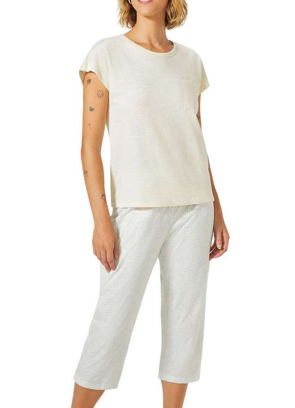 Características: Pijama Longo Feminino Hering Elaborado em malha de algodão Composto por blusa manga curta e gola redonda Calça pantacourt com acabamento flamê Composição: 100% Algodão