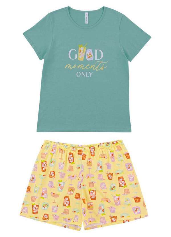 Malwee - Pijama Feminino Curto Malwee 1000133156 02340-Azul-Amarelo