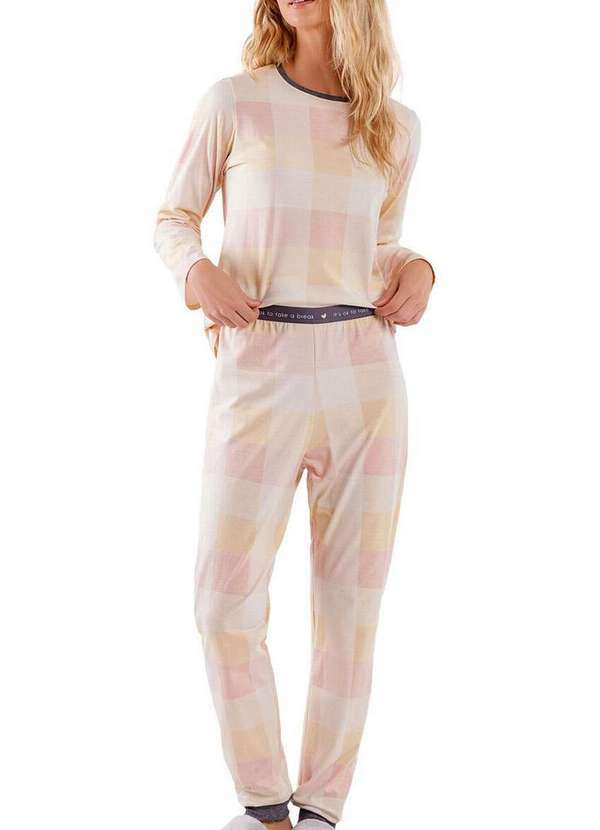 Características: Pijama feminino longo Blusa manga longa Gola redonda em cor contrastante Calça com cintura em elástico macio personalizado e punho na barra Pijama com estampa xadrez Confeccionado em malha comfort Composição: 100% Algodão